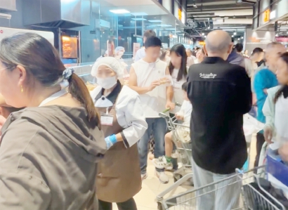 熟食区、烘培区人山人海。