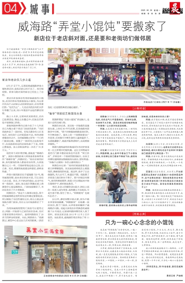 位于威海路的“弄堂小馄饨食府”(以下简称弄堂小馄饨)是一家有30多年历史的馄饨店,其主打的特色小馄饨和葱油拌面等面点深受市民朋友的喜爱。