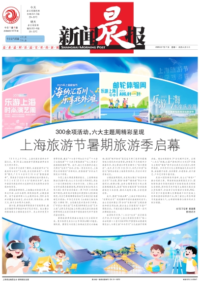 暑期旅游季期间,上海推出时尚演艺周、乐享北外滩、水岸乐游周、邮轮体验周、古镇旅游周、亲子旅游周等六大主题周活动,300余项活动覆盖时尚演艺、滨水休闲、邮轮体验、古镇文化、亲子互动等多元场景。