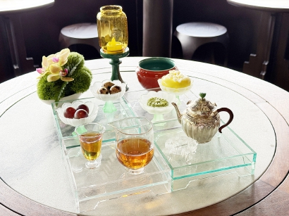 湖心亭最贵的女王尊享套餐是英国女王伊丽莎白二世来访时享用过的同款,价值1288元,可供3人享用。套餐以九宫格的形式呈现,包含绿波廊定制的茶点,每天新鲜直送,所以需要提前预约。而且套餐里的茶是妥妥的“双非遗”作品,不仅是非遗大师手制茶品,还配合了同为非遗的茶艺表演。“订这个女王套餐我们还会赠送9张单反拍的照片,让顾客可以发朋友圈。我认为顶流下午茶应出自中式茶点,华流即顶流!”戎新宇自豪道。