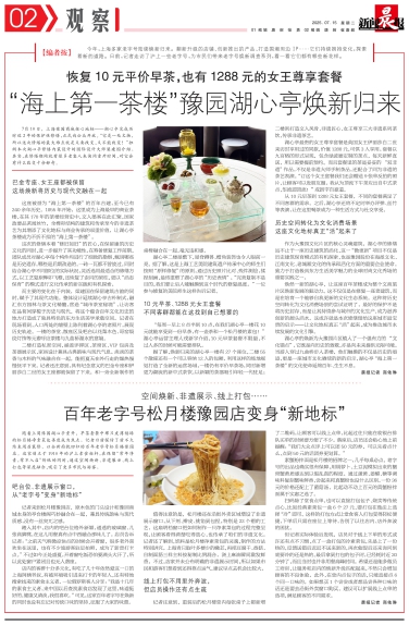 湖心亭的焕新为大豫园片区植入了一个强有力的“文化锚点”。它既是向历史的致敬,亦是向未来提供无限可能。当游人穿过九曲桥步入茶楼,他们触摸的不仅是历史的痕迹,更是一座城市文化赓续的新的启示,湖心亭“海上第一茶楼”的文化使命延绵百年、生生不息。