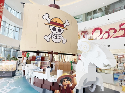 在五角场逛的一大好处是,几个商场都被地下通道串联了起来,大热天的不用顶着太阳在室外暴走。像是上船吧!为ONE PIECE拼了!“巨型乐高前进梅利号”限时登陆这个快闪从地下通道进入百联又一城,直接坐电梯到1楼南大厅就能看到特别打造的、以1:27比例还原的7.8米高巨型乐高前进梅利号。店员介绍:“这个装置是直接从BW搬过来的,没去BW打卡的话千万别错过这里!来快闪的小孩、大人都有,周末人会多一点,错峰的话建议周中来。”
