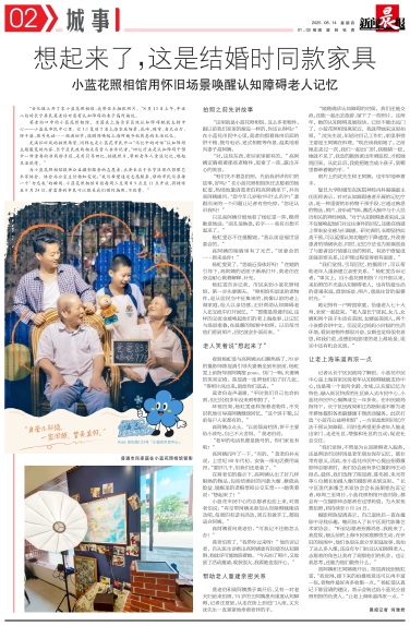 “我们觉得,引导回忆、拍摄照片,可以帮助老年人重新建立亲密关系。”杨虹雯告诉记者,“事实上,自小蓝花照相馆7月开张以来,来拍照的不光是认知障碍老人,也有热爱生活的普通家庭,借助场景、照片,重温往昔的温馨时光。”