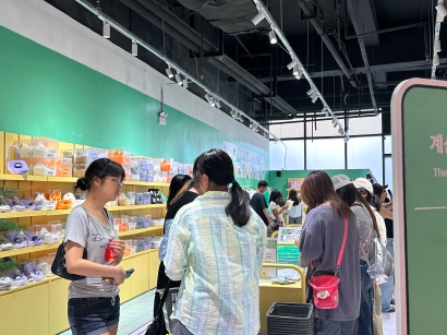 “百鬼夜行系列是日方精修的全新设计,日本都没发售过,全是直邮过来的。”路人超能100快闪店现场负责人指着货架上的徽章和亚克力砖说。这场近日开幕的快闪,与TXT、女神异闻录的限时店形成“三连击”,TXT主打毛绒纸巾盒等卡通类周边,女神异闻录则带来灯光画、毛绒眼罩等独家周边。