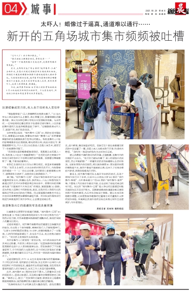 记者观察发现,中午12点左右是城市集市的用餐高峰,不少附近的白领、居民都会过来吃饭。加上地铁口出来的人流和拍照打卡的游客驻足,通道多次出现短时堵塞,但在现场未看到明显的人流引导标识,也无工作人员进行疏导管理。