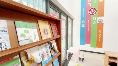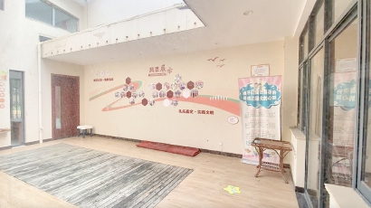 记者注意到,大厅接待台后面的墙上挂着很多正六边形的功能标牌,上面确实有“儿童友好社区”的牌子。如果说,该儿童服务中心没有相关设施也不尽然,在社区图书馆门口立有一张易拉宝,上面对“儿童友好社区”项目进行了简单介绍。