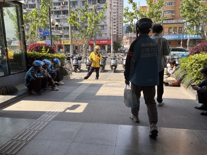 小李对“下午茶”时段骑手的观察是:“有些回家,有些要么就在跑单,要么就在广场里,也是休息一下,有空调嘛这边。”