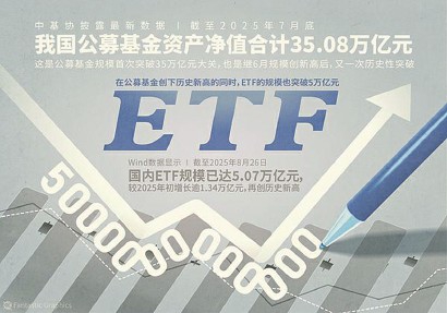随着股市的持续上涨,基金尤其是权益类基金受益匪浅。日前,来自中基协的最新数据显示,截至今年7月末,公募基金管理规模达到35.08万亿元,首次突破35万亿元大关的同时,管理规模再创历史新高。而从产品类型来看,ETF无疑是这波规模大涨的“急先锋”,成为行业最为靓丽的风景线。