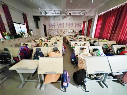 在福建泉州东星实验小学,学生们只要转动旋钮,椅子靠背放下,腿托升起,就变成一张午睡床,针对高年级的午休课桌椅,还可以把后排的桌子变成靠背的一部分,教室很快就成了可午休的临时宿舍。