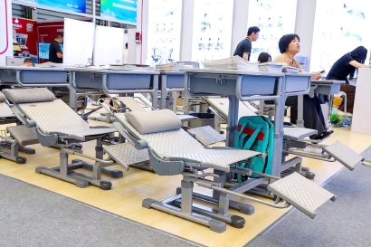 目前,可以平躺或倾斜的各式午休课桌椅已经在多地学校投入使用,这种桌椅最大的特点就是“变形”功能——上课时,它是标准的课桌椅;午休铃声一响,它就能轻松切换形态,让学生舒适地躺下休息,校园午休从“凑合趴睡”变成“舒适躺睡”。