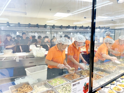 与预想中的畅通无阻不同的是,食堂入口处竟有挂着工牌的工作人员值守,逐一询问准备进入的人员是否是阿里员工,并提醒员工挂好工牌。当记者表示自己非阿里员工时,工作人员明确告知食堂并不对外开放,是园区内部食堂。