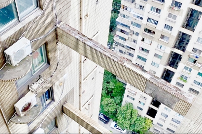 “外墙上贴釉面砖可能是当年比较流行的工艺吧。我们周边有很多房龄近三十年的大楼,外墙也都是这么贴的。”孟阳说,再好的工艺也熬不过时间。近三十年,风吹日晒热胀冷缩,甚至居民家安装空调时的人为因素,让这些原本坚固的瓷砖纷纷脱落。