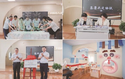 仪式上,李倩与幼儿园园长卫晓萍签署了《医教融合基地共建协议》,为双方深入开展合作奠定了坚实基础。汪源源与王彤共同为“梦想医学院”复幼示范点揭牌,标志着该项目在“教养医共育”理念指导下,迈出了课程实践的关键一步。