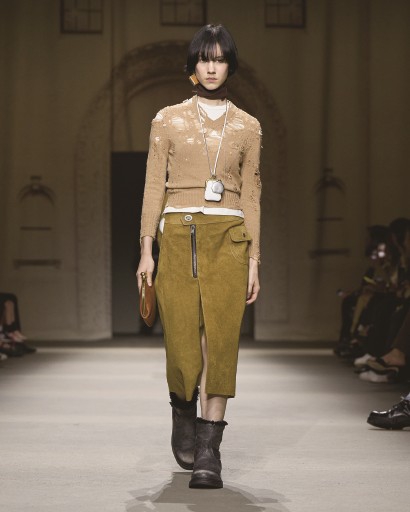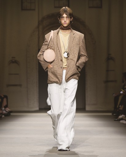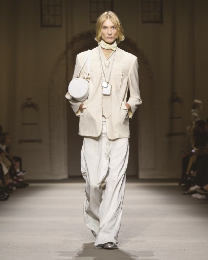 2026春季系列灵感源自纽约街头的活力与生机,采用多种精制皮革:麂皮与纳帕皮革呈现柔软蜡感,做旧效果与擦色箔片元素点缀其间。下装方面,既有采用再生牛仔布与工装面料打造的休闲裤,亦有剪裁利落的西装裤与半身裙。本季色调以浅色系为主,将白色、蜜棕色、棕褐色与褪黑色交织;柔和的粉蓝、粉黄、粉绿以及亮眼的金属色,为整体造型增添层次。