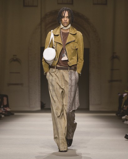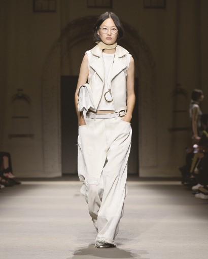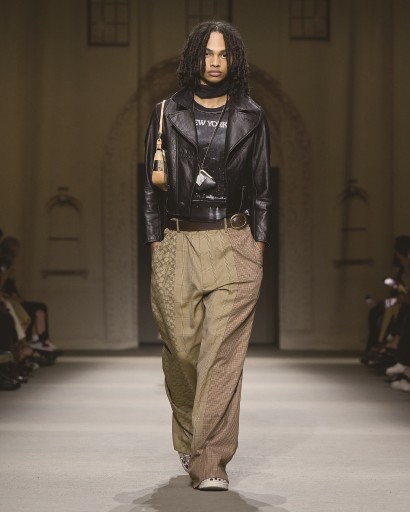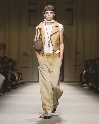 嘉宾们穿过幽暗的入口进入秀场,四周环绕以褐色画布勾勒的纽约街景。随着光影交织,模特仿佛行走在城市街头,化身都市风景的一部分,营造沉浸式的氛围体验。