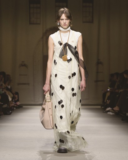蔻驰品牌用户体验经理张沁瑶介绍:本季Soho运动鞋以绑带设计全新亮相,推出皮革、麂皮、斑点印花以及金属光泽等多种款式。部分Soho运动鞋还饰以爱心、天空与热气球的皮革贴饰,与本季欧根纱裙装的浪漫细节相互呼应。鞋履系列还带来厚底工装靴、柔软平底德比鞋以及绑带设计的优雅平底鞋。配饰方面,Kisslock颈包与耳饰、项链等精巧首饰为造型点睛。灵感取自维多利亚时期的爱情信物,融入迷你信封与书本、心形小盒、硬币等元素,并饰以手写情书细节,呈现温柔而隽永的浪漫。