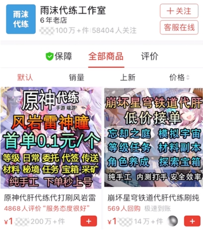 此前,米哈游在日常巡查中发现,某电商平台店铺“雨沫代练工作室”利用外挂提供代练服务。经进一步调查发现,该工作室为提升代练效率,获取更多客户牟取不法收益,长期非法使用外挂开展代练服务,总销量超760万单,为全平台最高。该行为严重破坏公平游戏环境,对玩家权益造成损失。米哈游随即提起诉讼,要求该工作室停止侵权行为,并赔偿相应损失。