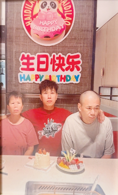 “海底捞的服务员们举着牌子给我爸唱生日歌。”此外,他们还获得了一张当场打印出来的合影,这是一家人第一张实体的全家福。在杨楼租住的小间里,挂着父母两人在照相馆拍的艺术照,但缺了他自己。他解释,一套几百元,太贵了,就先让老两口拍吧。