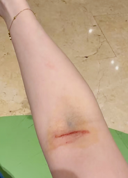 回过神来的张女士,发现自己的手臂已经被门把手划伤出血。简单清洁完伤口后,张女士第一时间去商场服务台投诉。