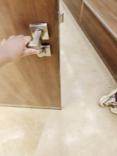 记者看到,该处“无障碍厕所”的把手已用黑色包套进行保护。“清洁间”的金属把手则没有包套,和张女士拍摄的事发时的“无障碍厕所”把手款式一致。未包套的金属把手为方形,虽然棱角处经过打磨,轻轻摸上去不算划手,但如果用力握住或触碰还是有明显的棱角触感。