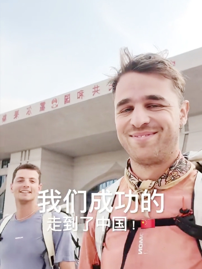 在历经一年零七天、穿破6双鞋后,27岁的本杰明·安布罗和26岁的洛伊克·瓦索终于走进了中国境内。他们目前距离上海还有5000公里左右,预计还得走上半年。两人告诉记者,之所以选择上海,是因为这座城市在他们眼中代表着当今中国经济和文化的顶峰。