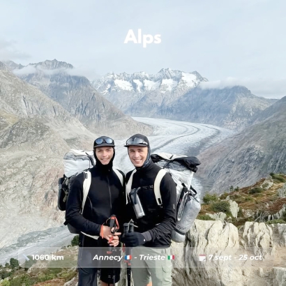 在徒步旅行的开始阶段,两人先翻越了阿尔卑斯山。他们于2024年9月7日从安纳西出发,在10月25日到达意大利的里雅斯特,共行走了1060公里。因为这一路都是山路,给两个年轻人的体能带来极大挑战。
