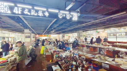 据付先生介绍,目前现场主要有两部分客流:“星期四以专业客户为主,主要是交易翡翠玉石这些品类,全国各地的客商都会来我们这里,人流量也是比较好的。周六主要是交易古玩杂件,而周日的人气当然不用说,就是旧书交易,许多书友都会来这里。”