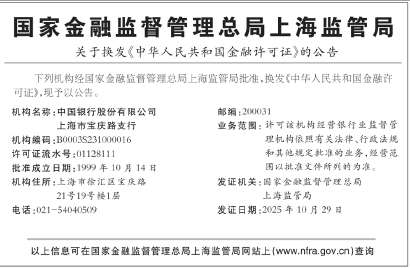 关于换发《中华人民共和国金融许可证》的公告