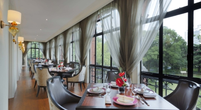 亮点:园内遍植古树名木,除了提供舒适宁静的住宿条件之外,更配有多种餐饮选择,无论是中西式自助餐,还是精致中式餐饮服务,或是商务伙伴及友人小聚畅谈,都可以提供给与会人员丰富的选择和不同以往的上海体验。