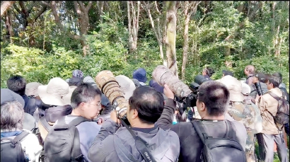 近年来,但凡有罕见的鸟类出现,都能吸引大批观鸟和摄影爱好者,如果它又是颜值在线的鸟,前来拍摄的人群会更多。比如,曾经出现在长风公园的仙八色鸫、出现在世博文化公园的红翅绿鸠。摄影爱好者们的装备也越来越精良,爷叔们扛着数万元的长枪短炮,为了拍到最佳画面,常常在公园一泡就是一天,很有耐心。