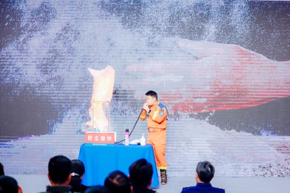活动现场,第三届上海市应急科普讲解大赛十佳讲解员、来自普陀区融媒体中心的记者纪楷坤带来了《真“芯”不怕火炼——建筑保温材料的“安全密码”》的科普讲解;首届上海市消防科普讲解大赛一等奖获得者、来自宝山区消防救援局的消防员马俊涛用三个扣人心弦的现场实验,演示了日常生活中常见的消毒凝胶、杀虫喷雾剂的潜在危险,以及粉尘爆炸的原理。
