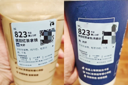 有咖啡爱好者做了个实验:同时购买瑞幸的红茶拿铁和黑糖燕麦拿铁,发现前者甚至连气泡都没有。“气泡是脂肪和蛋白质被蒸汽棒打发后产生的,脂肪和蛋白质含量越高,气泡越绵密。红茶拿铁一个气泡也没有……”