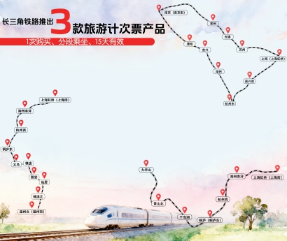 为进一步满足公众差异化旅游出行需求,促进长三角地区旅游消费,长三角铁路针对长三角范围内旅游客流出行特点,创新客票服务举措,加大客运产品供给,计划2025年11月27日起推出3款旅游计次票产品,为旅客“量身”打造15日畅游长三角的乘车新体验。