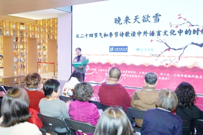 活动以“晚来天欲雪——从二十四节气和季节诗歌读中外语言文化中的时间韵律”为主题,通过教师解读、视频欣赏、互动问答等多元形式,为市民搭建起一场兼具思想深度与诗意美感的文化雅集,让时间韵律解读在中西文化碰撞中焕发新的生机。