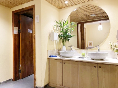 武康庭是另一家愿意和游客分享厕所的商户。在一楼入口处,立了一块标识:厕所在二楼。走到二楼,只见厕所干净整洁,女厕位有五六个。