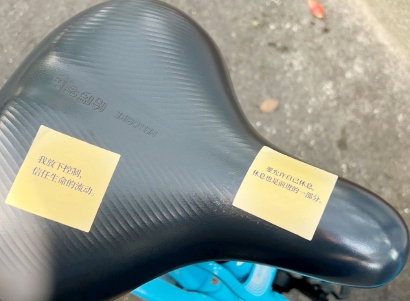 “风声呼啸/那是单车在为你叫好”“只要脚一蹬/我就拥有了这世上/兜不完的风”“要允许自己休息,休息也是前进的一部分”。如果共享单车上出现的是这些暖心诗句,而非不堪入目的小广告,你的骑行体验是否会加分?
