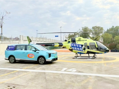 此次新航线的首航和新起降点的投用,基于大众交通与新空直升机的合作。未来,大众出租车将完成从家门到直升机舱门、从直升机舱门到目的地的接驳,解决低空出行的“最后五公里”难题。