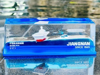 除了潮流趣味,硬核的“大国重器”也被巧妙地浓缩进了文创产品中。在一款名为《深海水浮油船舶摆件》的作品中,不仅生动还原了福建舰航母走向深蓝的英勇形象,更在底部的浮油液体中藏着“真家伙”。创作者创新性地加入了自中国南海深1865米处采集的真实深海水,让这件礼物兼具了科普意义与收藏价值。