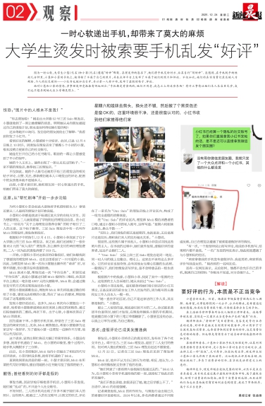 大学生烫发时被索要手机乱发“好评”