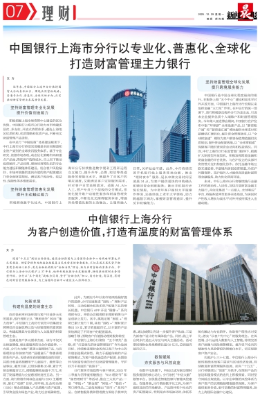 近年来,中国银行上海市分行秉持国有大行的责任担当,围绕共同富裕战略,沿着专业化、普惠化、全球化的方向,扎实推动财富管理业务高质量发展。