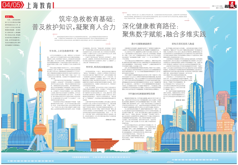 校园急救教育是新时代学校卫生与健康教育的重要内容,也是全国健康学校建设的重要试点任务。上海教育部门积极联动各方力量,系统推进校园急救教育、常态化开展急救技能培训,切实回应社会对师生生命安全的关切,切实增强师生自救互救能力,助力中小学生健康素养全面提升。