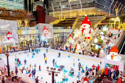 想要玩冰雪的话,商场打造了超过1000㎡的实景雪国与500㎡城市冰场。还有10米高红帽雪人、星光雪屋、礼物船与冰钓小熊等装置交织出童话场景。围绕冰场展开的雪景体验日、主题巡游等活动,满满的冬日仪式感。该场景将持续至明年2月,并随节日节点更新内容,大家去玩的话不要错过哦。