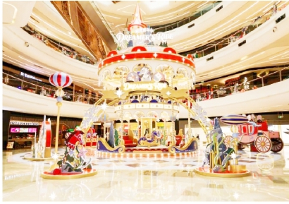 除了演出,商场全域也被转化为可游可玩的奇幻乐园。“骑境嘉年华”巧妙融汇中国农历马年的文化意象与西方童话叙事,将“马”所象征的自由、勇气与希望,转化为当代都市语境下的艺术表达。大家可以在五楼中庭内看到18米高双层旋转木马徐徐转动,也能在商场外立面欣赏1500㎡巨型灯饰画铺展温柔光影。每周六、日及法定节假日,商场将开放包括旋转木马、“以梦为马”“幸运奇遇”等在内的多处互动打卡点,大家还可参与集章活动,打卡兑换寓意美好的限定好礼。