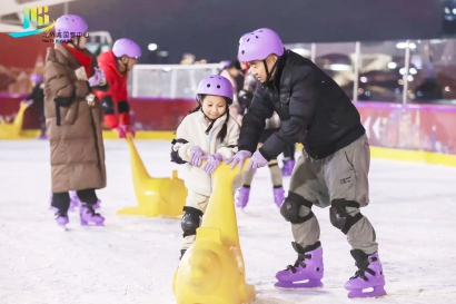 江上冰场运营时间为1月1日-2月28日每天10:00-21:00,每日7个场次,其间安排专业教练指导,并推出涵盖单人、亲子及多次畅滑的多样化票务选择,满足不同客群全家出游、好友欢聚等多元化需求。