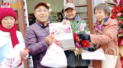 1月3日这天下午,报刊门市部相当闹猛,《时代达人秀》节目组来到乍浦路姜俊师傅新开张的报刊门市部,以直播形式与姜俊师傅互动并送上新年祝福,嘉宾现场还进行了即兴表演。许多读者都纷纷赶来,一方面一睹嘉宾风采,另一方面也是庆祝门店重新开门营业。