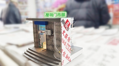 在乍浦报刊门市部,记者注意到了一个制作精巧的报刊门市部模型。那么,这个模型背后有什么故事呢?翼龙模型工作室主理人翼龙告诉记者,他是报刊门市部的老读者,之前每个月都会去吴淞路的报刊报刊门市部购买报刊杂志。这个模型他是从2025年1月份开始做的,报刊门市部通过3D建模,然后3D打印出来,再进行上色,而精巧的报纸模型是通过电脑设计的,打印出来之后,再一张一张剪出来,最后把这些报纸放进报刊门市部的模型当中,而这些工序前前后后就花了近半年的时间。