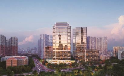 【超级名片】之苏州凤起潮鸣 在苏州工业园区30年发展源点湖西板块的二次开发中,基于“一面城市三面湖”的格局,绿城主动参与红线共建,打造约460米“鸣凤堤”,将城市景观转为公共风景。值得一提的是,项目主入口打造约85米跨度的“凤起冕旒”华贵门仪,将城市超级符号融入建筑。
