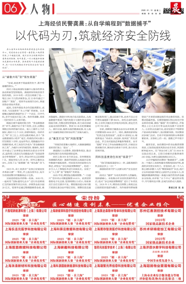 从自学编程的民警到“数据捕手”,从解决一个痛点工具到构建全周期风险防护网,龚晨的步伐坚实而有力。在他身后,是一个八人核心团队和数十人的“模型体验官”队伍。他们正以科技创新不断定义新时代公安战斗力,用键盘和数据构筑起一座超大城市的经济金融安全防线,在护航“五个中心”建设的征程中,书写着科技兴警、忠诚为民的动人篇章。