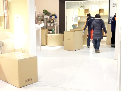 商场4楼已经开始了打包搬货,多个展间内的物件被搬空,对于喜欢沉浸式逛宜家样板间的市民来说体验感可能会受到一些影响。一位在打包的工作人员告诉记者:“这些东西打包好会搬到仓库,之后会运到其他商场去。”