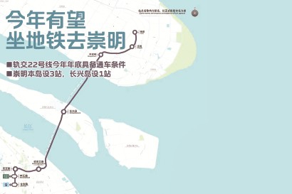 据悉,轨道基通22号线通车后,从崇明东滩坐地铁出发到浦东金桥大概30分钟,经过地铁转换以后,可以在1小时左右到达市中心人民广场。
